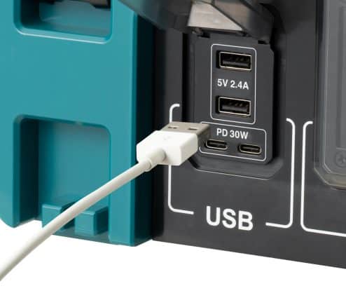 - Power Converter powered by Makita portable power pack