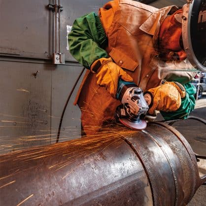 Active Feedback sensing Technology for kickback reduction automatically shuts off the power supply to motor in the case of a sudden drastic decrease in wheel speed.