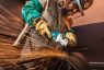 The safety of the angle grinder is increased by the safety switch on the bottom, which must be constantly pressed down in order for the machine to rotate. In addition, the AFT (Active Feedback sensing Technology) function constantly monitors the speed of the wheel and if the speed drops suddenly, it turns off the engine, preventing kickbacks.