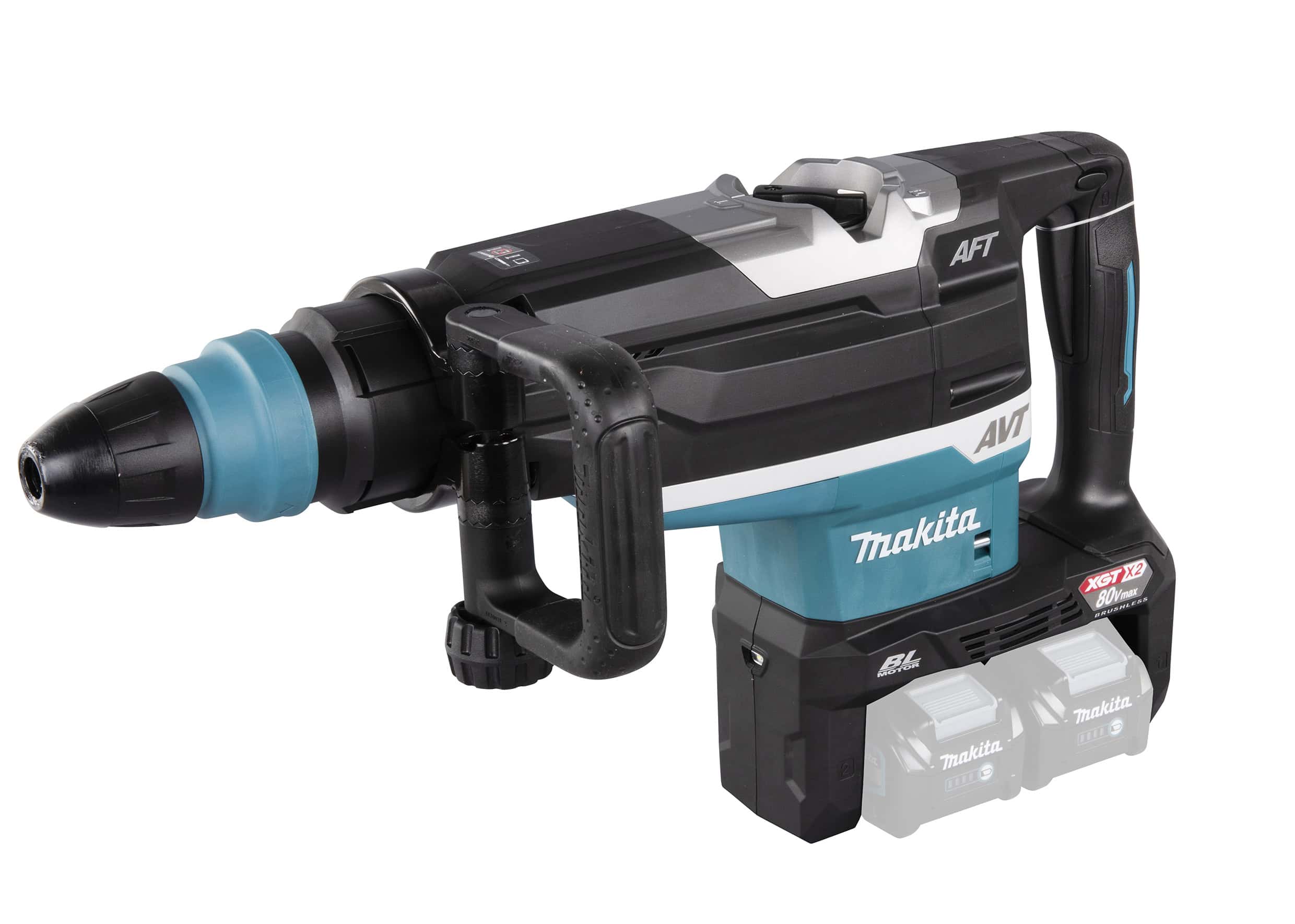 HR006G is an SDS-MAX cordless rotary hammer powered by two 40Vmax XGT Li-Ion batteries in series.