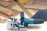 A 701 W plate joiner with a 100 mm blade and 20 mm bore for carpentry applications. A maximum bore depth of 20 mm. The tool is suitable for making biscuit joints in sheets and other wooden structures.