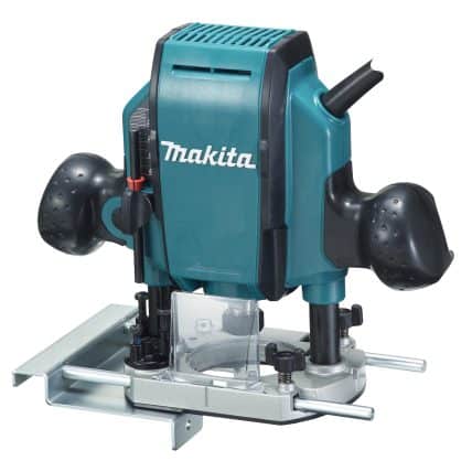 A light and easy-to-use plunge router with a powerful 900 W motor for decorating woodwork and routing grooves. Comes with an 8 mm collet and straight guide.